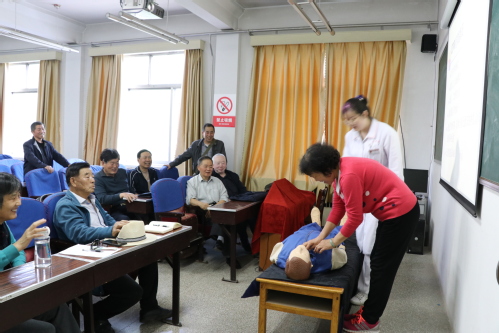 为提高离必赢3003no1线路检测中心的健康管理意识,普及现场急救知识,提升自我保护能力,4月20日,结合、依托离退休党支部管理区学习平台,离退处在康乐宫开展知识讲座,校医院刘海燕护士到场讲授心肺复苏术知识。