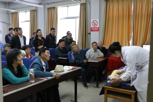 讲座结束后,感兴趣的老同志在刘护士的指导下进行了操作训练,大家反映学习该类知识很有必要,讲座很有意义,值得推广。