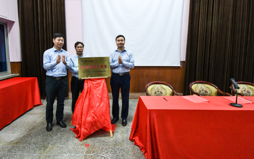 中国石油大学(华东)离退处党委书记、处长高广学、后勤保障处副处长胡宝志、齐鲁医院东营分院理事长曹文辉共同为老年健康咨询室揭牌 梁镜明摄影