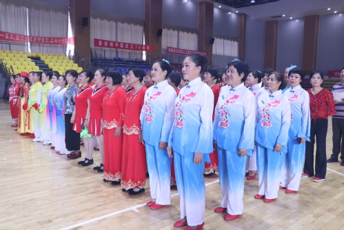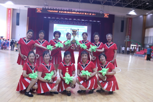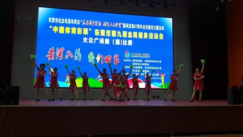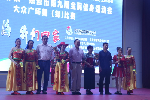 6月18日,“中国体育彩票”东营市第九届全民健身运动会大众广场操(舞)比赛在河口区隆重举行。来自全市的8支代表队110名队员参加比赛。我校夕阳红艺术团选派健身球队参赛。