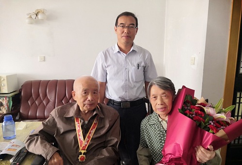 仪式结束后,离退处党委还上门为行动不便的离休干部颁发纪念章,并送上祝福和慰问。