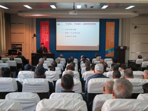 高广学在党课开始前介绍了离退处党委“不忘初心、牢记使命”主题教育工作分步动员部署情况、工作进展情况以及下一步的实施方案。党课上,高广学从党的最高纲领、自改革开放以来的五个目标以及实现共产主义的漫长历史过程等方面分享了他关于共产党人理想信念和初心使命的学习体会,并指出,共产党人的理想信念和初心使命是高度一致的。他讲到,做一名新时期共产党员,首先要努力用理想信念、初心使命强基铸魂,要正确认识和处理远大理想与现实工作的关系,努力做到“六个表率”,秉持“逆境下的坚韧、顺境下的理智、常境下的有恒”的人生态度。最后,高广学结合工作,从党建引领工作机制、精准服务工作机制、文化养老工作机制、老同志作用发挥工作机制和部门自身建设等五个方面,分享了关于进一步加强和改进离退休工作的几点思考。
