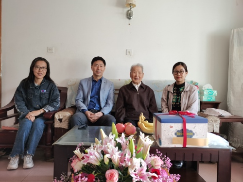 10月13日,离必赢3003no1线路检测中心管理处(老干部处)、储运与建筑工程学院负责人一行来到我校离休干部赵振远老师家中,为其庆祝90岁生日,祝愿老人开心快乐、健康长寿。