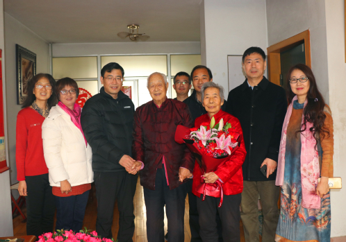 田丰与左玉科老人亲切地拉着手谈起了家常,详细了解了老人的日常生活起居情况,并简要介绍了学校近期发展情况和取得的成绩。当得知老人正在认真深入地学习《习近平谈治国理政》第三卷时,田丰动情地表示,左老师每天坚持政治理论学习,经常朗读马克思主义经典著作,研究学习中国特色社会主义思想理论,这不仅是一种良好的习惯,更是我们应该传承的优良传统,是年轻一代学习的榜样。