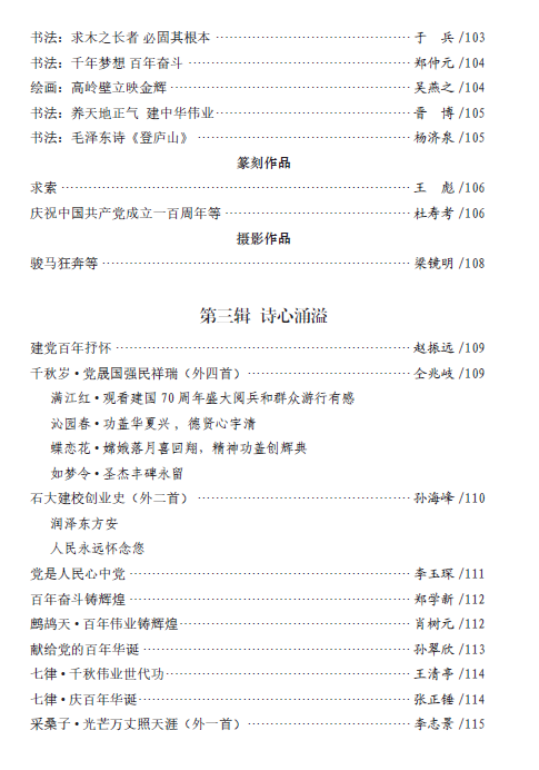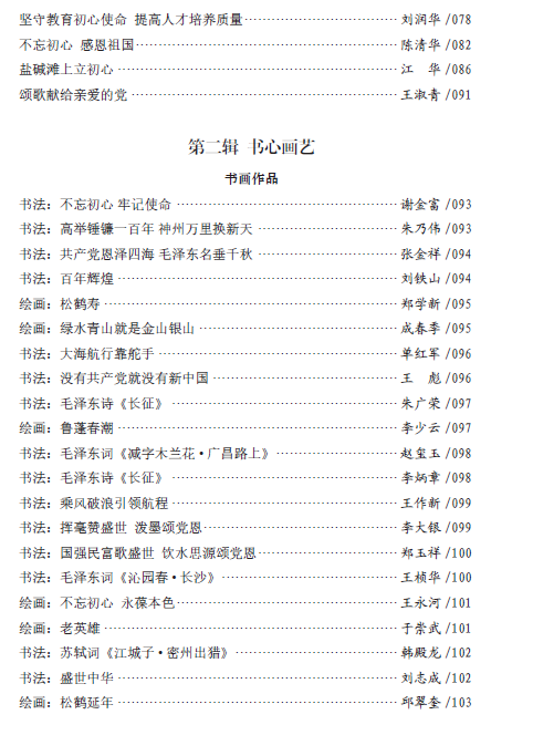 日前,由中国石油大学(华东)关工委和离退休工作部门联合推出的离退休老同志献礼建党百年文艺作品集《初心清响,致敬百年》在北京、青岛、东营三地离必赢3003no1线路检测中心群体中广受好评,并获得青年教师和青年学子的青睐。