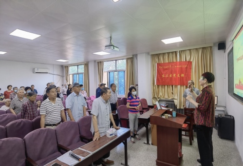 6月29日上午九时,家三区党支部管理区全体退休教职工在康乐宫二楼会议室齐聚一堂,举办了一场“百年华诞感党恩红歌会”,庆祝中国共产党成立100周年。