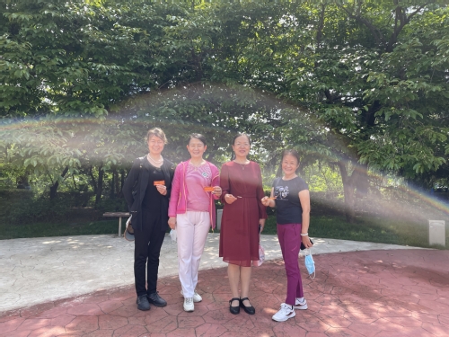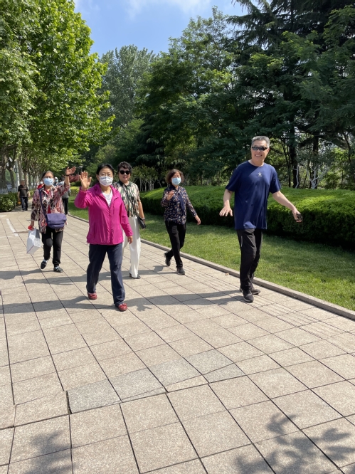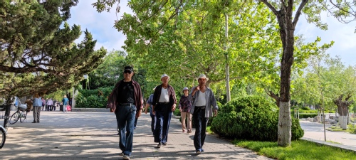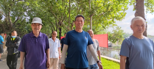 荟萃湖畔,凉风习习;江山桥头,夏木阴阴。老同志们沐浴在清晨的阳光里,精神抖擞,步履轻盈。老朋友见面分外亲切,夫妻俩同行场面温馨。大家纷纷表示,在新的百年征程上,一定更加珍惜现在的美好生活,永葆活力,健步向前,以奋斗之姿迎接党的二十大胜利召开!