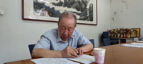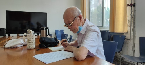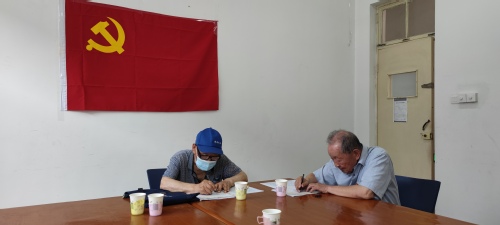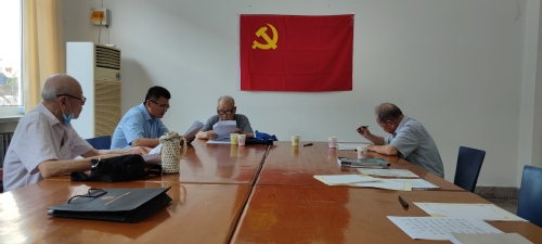 6月21日上午,离休党支部在康乐宫一楼会议室开展主题党日活动,总结上半年的各项工作,进行相关理论学习,并结合本支部实际情况开展“手写入党誓词”“我与党旗合个影”活动。