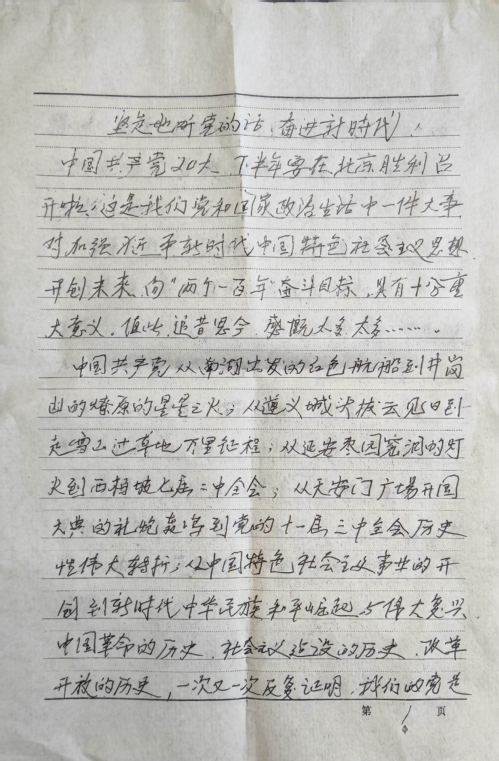 会上,景长顺同志和梁树田同志还分别朗读了自己的学习心得《坚定地听党的话,奋进新时代》《迎接二十大胜利召开》。
