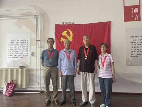 随后,老党员们一起畅谈党和国家发展取得的伟大成就。4位老党员衡九一,魏如利,王永刚,王庆兰,佩戴着 “光荣在党50年”纪念章,他们以耳闻目见、亲身经历,回顾了中国共产党从弱小走向强大,浴火重生的百年辉煌和百年荣光,大家纷纷感言,没有共产党就没有新中国,只有共产党才能让人民过上美好生活,只有共产党才能让祖国繁荣昌盛。马克思主义学院退休教授夏从亚退休不退岗,至今仍然奋战在教育工作第一线,承担着教书育人的任务,不忘教育初心,永葆育人情怀,表达了永远跟党走的坚定决心。