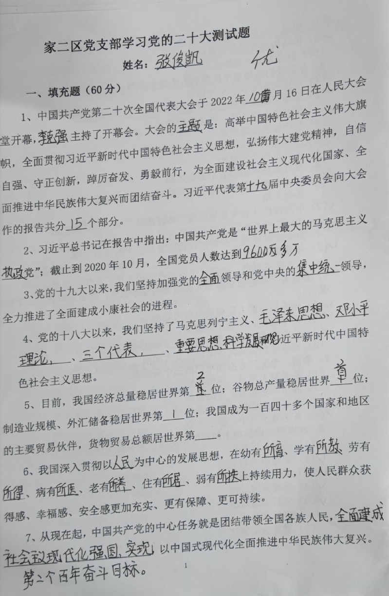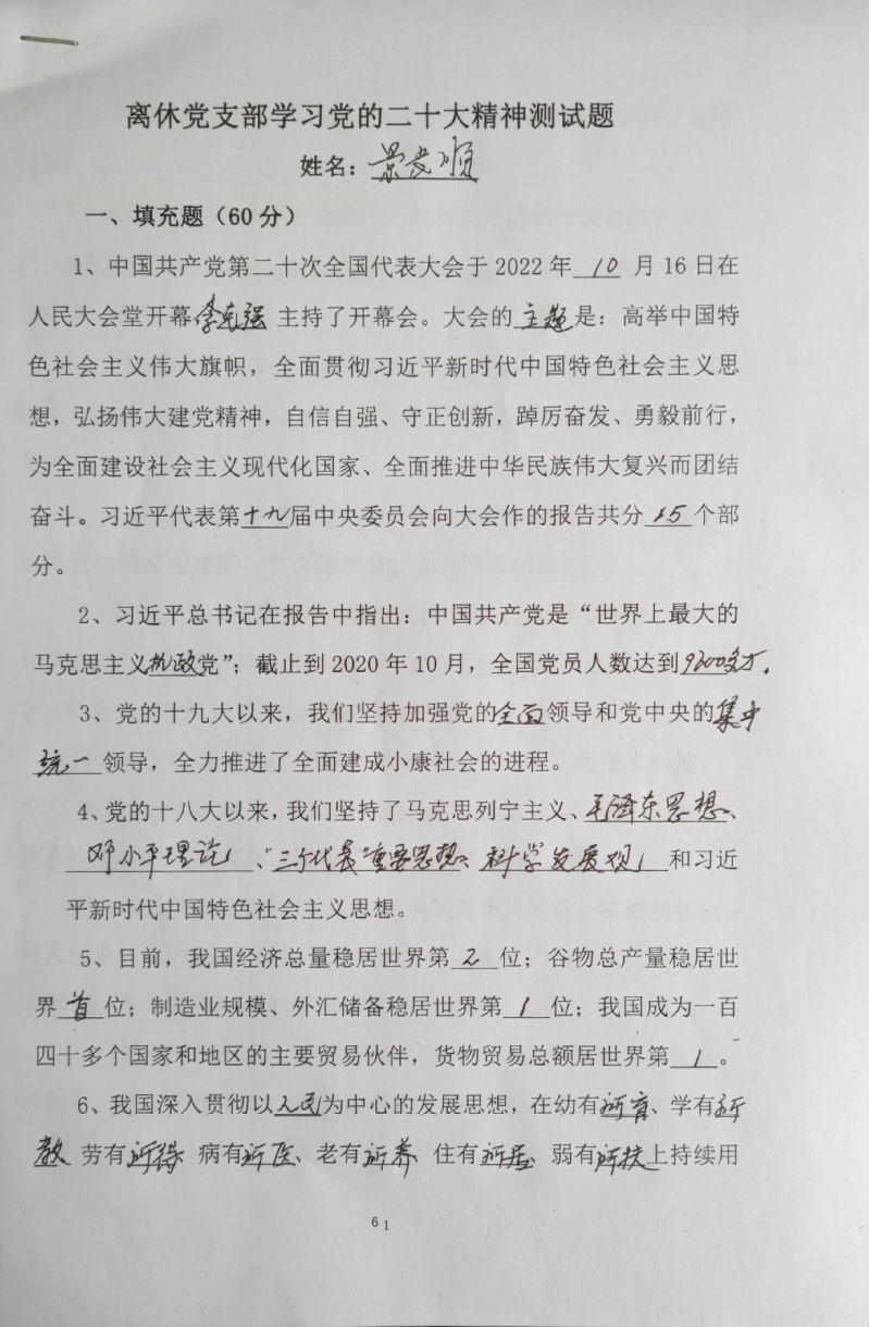 本次答题活动共设18道填充题共60个填空,8个不定项选择题。四个党支部共一百多名党员参加了活动,满分率达到了95%。大家纷纷表示,通过本次答题活动,对党的二十大精神有了更加深入的了解,下一步将继续深入学习贯彻党的二十大精神,以实际行动为实现中华民族伟大复兴的中国梦贡献力量。