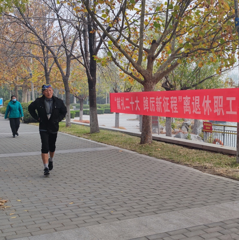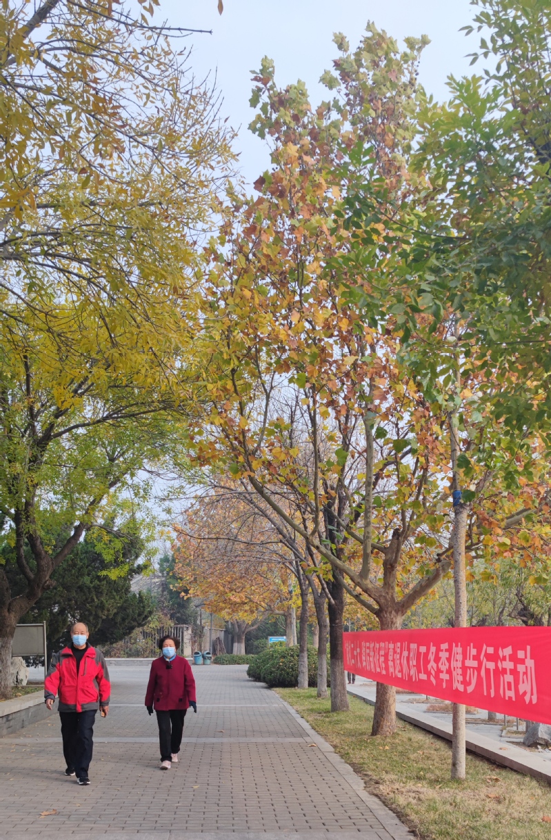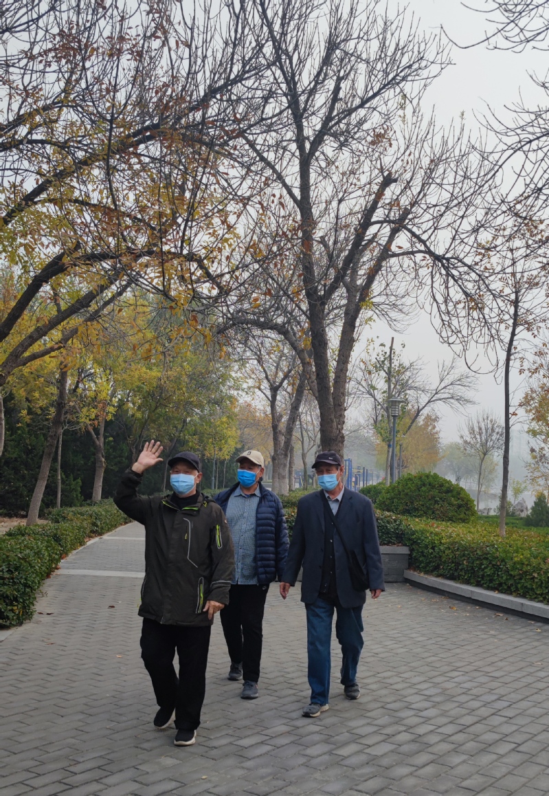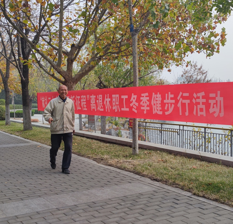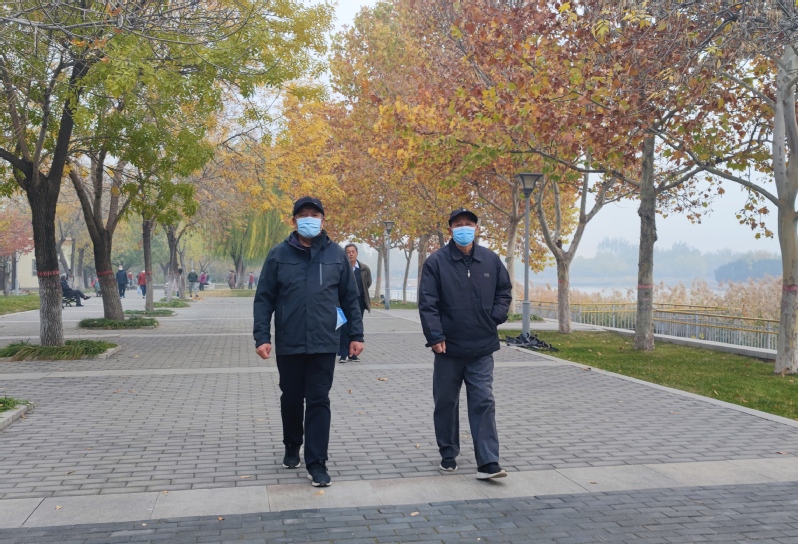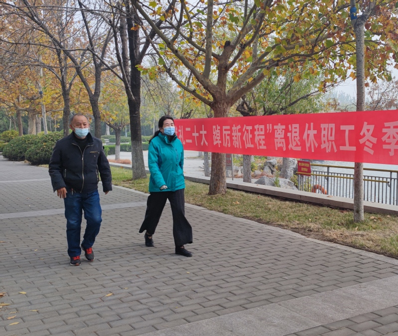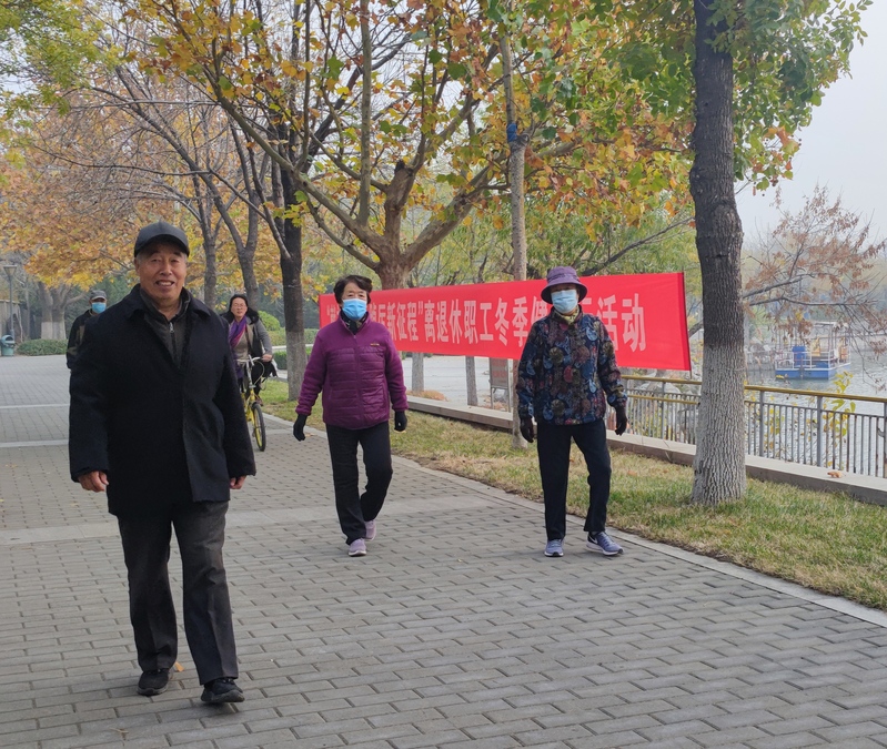 初冬,老职工环湖走