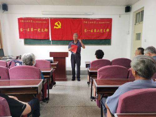 6月29日,家八区第一、第二党支部联合组织重温入党誓词及学习习近平总书记重要讲话精神活动。