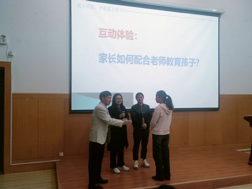 曹永强老师以“开启一年级模式,我们准备好了吗?”为题,围绕家长的准备、日常时间管理、辅导作业安排等方面为附属中学小学部一年级家长做专业的指导,并通过和家长的现场互动,让家长们认识到家长该如何配合老师教育孩子。曹老师表示,一年级养成的良好学习习惯、学习态度、行为习惯、是非观念,会让孩子受益终生!家长们纷纷表示,通过老师的讲解,认识到自己的不足和欠缺,今后一定不断学习,让家庭教育和学校教育共同为孩子健康、快乐成长保驾护航。
