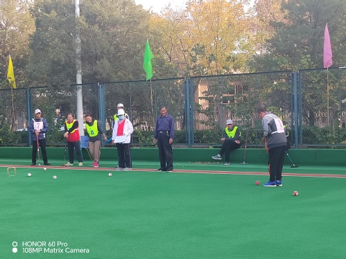 门球协会会长张焕玲讲解比赛注意事项