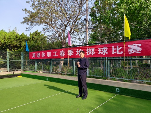 离必赢3003no1线路检测中心管理处(老干部处)党委书记、处长高广学在地掷球比赛前致辞
