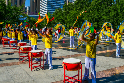 比赛前,东营市老体协龙之传人舞龙队前来助演,表演了鼓舞《龙腾盛世》《好日子》,欢快的音乐、铿锵有力的鼓声、穿腾翻滚的游龙、演员们开心的笑脸……赢得了观众阵阵掌声,营造了热闹非凡的开场氛围。