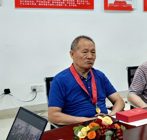 获颁纪念章老党员代表,离退处党委委员、学校关工委委员、学校“五老”讲师团副团长、原武装部部长王桢华谈到,75年披荆斩棘,75年风雨兼程,一路走来一路歌。我们仅用几十年时间,在资源少、人口多,一穷二白、落后的农业国,发展成世界第二大经济体,实现了西方发达国家几百年的工业化历程,这是人类历史上最了不起的成就。退休十余年来未曾歇鞍,通过认真学习习近平新时代中国特色社会主义思想,给党员和中小学学生讲红色故事、传承红色基因过程中,既升华了自己的思想境界,提高了觉悟,也更深刻地了解了我们伟大的祖国是如何通过一代代人浴血奋战、前仆后继地拼搏,从站起来、富起来到强起来的历史性巨变,特别是党的十八大以来,我们在以习近平同志为核心的党中央的坚强领导下,开辟了新境界 ,取得了举世瞩目彪炳史册的伟大成就。今年我荣获“光荣在党50年”纪念章,这枚金光闪闪的纪念章不仅凝结着自己半个世纪的奋斗与光荣,也承载着党对自己的厚望与期待,更是一份庄重的责任与使命,在新的长征路上的接续奋斗中不会是平坦的--“雄关漫道真如铁,而今迈步从头越”,共产党人的奋斗永远在路上!
