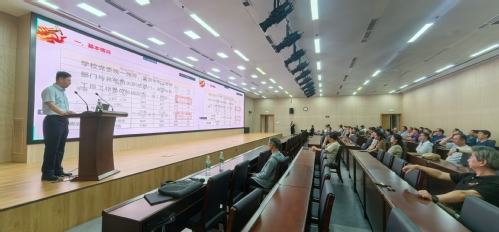 7月11日,2023年度新退休人员培训班在唐岛湾校区图书馆东馆第一会议室、东营科教园区康乐宫多功能厅以视频会议的形式举行,青岛、东营两地共80余人参加培训。