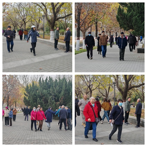 青岛健步行活动围绕江山瑞城小区岔河开展,东营健步行活动围绕荟萃湖开展。老同志们轻便着装,带着轻松愉快的心情,一边阔步前行,活动身体,一边呼吸河边、湖岸的新鲜空气,观看沿途树林落叶美景。大家或三五成群,或两两结伴,或怡然自乐,或健步如飞,或驻足畅谈,或拍照留影,一路欢声笑语,尽享初冬的美景与惬意,体验集体活动带来的快乐。