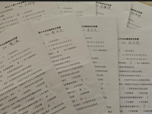 为深入学习贯彻党的二十届三中全会精神,家七区党支部于2024年11月14日至21日举办了学习党的二十届三中全会精神知识竞赛。