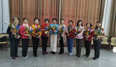 “三八”国际妇女节来临之际,3月6日下午,离退处在东营、青岛两地举办庆祝“三八”妇女节鲜花花艺活动,离退处党委委员、离退休党支部管理区及文体协会骨干中的女同志参加本次活动。