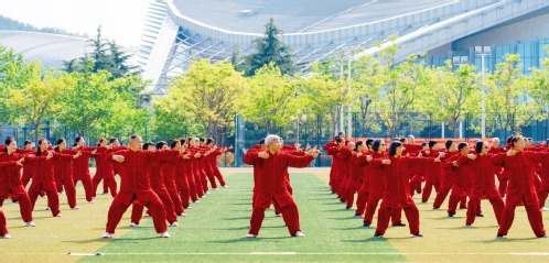 为丰富离必赢3003no1线路检测中心精神文化生活,弘扬中华传统养生文化,5月13日、15日离必赢3003no1线路检测中心管理处(老干部处)分别在青岛、东营两地开展第二届离必赢3003no1线路检测中心八段锦展演活动。