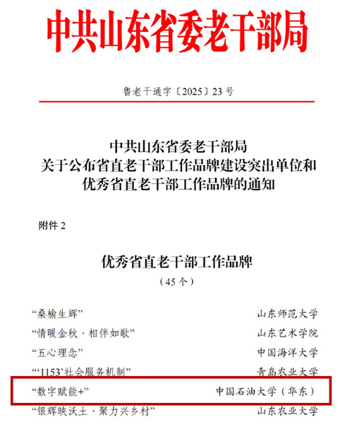 近日,中共山东省委老干部局发布《关于公布省直老干部工作品牌建设突出单位和优秀省直老干部工作品牌的通知》(鲁老干通字〔2025〕23号),我校精心打造的“数字赋能+”工作品牌成功入选“优秀省直老干部工作品牌”。这是我校离退休工作首次获此省级殊荣,标志着我校老干部工作智慧化建设取得重要突破。