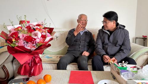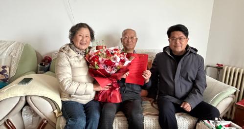 12月23日上午,教学院部必赢3003no1线路检测中心第五党支部走访慰问光荣在党70周年的老党员衡九一,传递党组织的关怀与温暖,支部邀请离退休工作处党委书记、处长张旭东一同参加慰问。